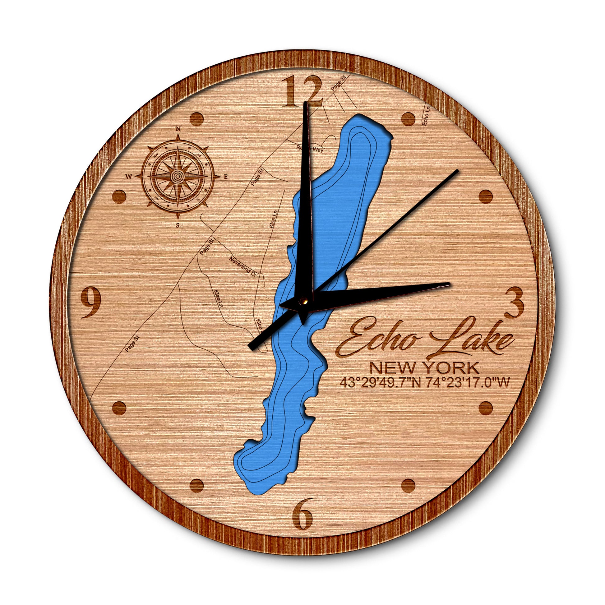 Echo Lake(Speculator), New York 14in Layered Map Clock - Any Lake, Pond, or Reservoir - Unique Home Decor