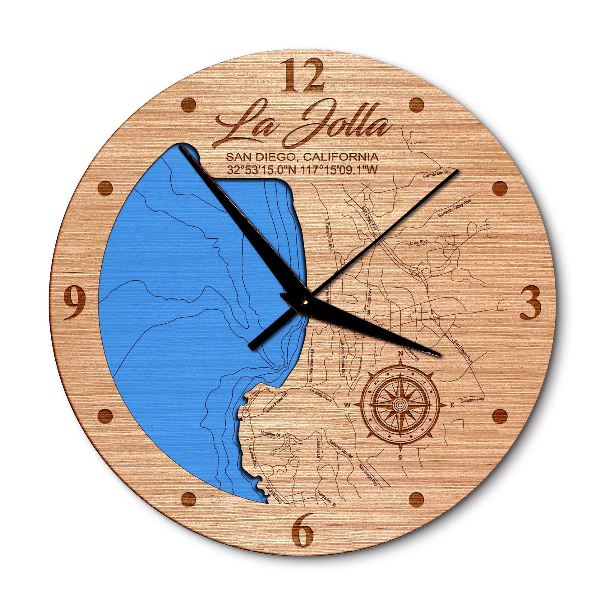 La Jolla San Diego, California Layered Map Clock - Any Lake, Pond, or Reservoir - Unique Home Decor